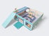 Our unique 3-world house with a patent application is a multifunctional wooden playhouse. By changing and rotating the two background panels and either standing or lying down the playhouse, 4 different play options can be created with just one toy—saving space and providing endless fun. And the matching play accessories are already included.